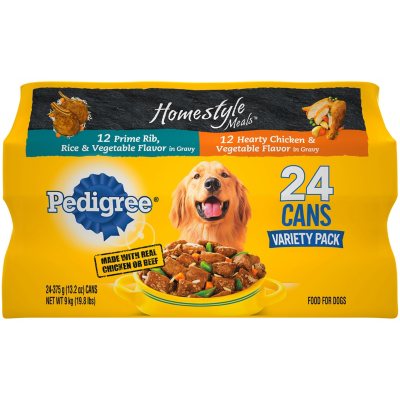 Buy products such as 12 pack pedigree chopped ground dinner with beef with chicken adult canned wet dog food variety pack 132 oz. Cans at walmart and save. The food is high protein at 24 and also consists of 15 fat 5 fiber and 10 moisture. Shop for ol roy all dog food in dog food treats.